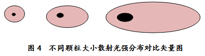 顆粒越小,分布在360度空間范圍的散射光光強差越小,當顆粒小到一定極限,光強差將小得幾乎難以被分辨出來。這時就到了激光粒度儀的測量下限了。從圖4可以看出,當顆粒小到一定程度,光強矢量圖無限接近圓形(顆粒無限接近圓心),這時的光強差是難以分辨的。光學設計上的障礙和散射光本身的特性決定了常規(guī)激光粒度儀的測量下限一般在0.2微米左右。