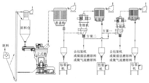 立式磨工藝生產(chǎn)重鈣流程示意