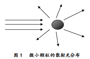顆粒越細,散射光的角度越小。當顆粒幾何尺寸達到亞微米級別時(shí),大于90度散射角散射光將明顯增強。微小顆粒的散射光甚至在360度范圍內都有分布,如圖1所示。
