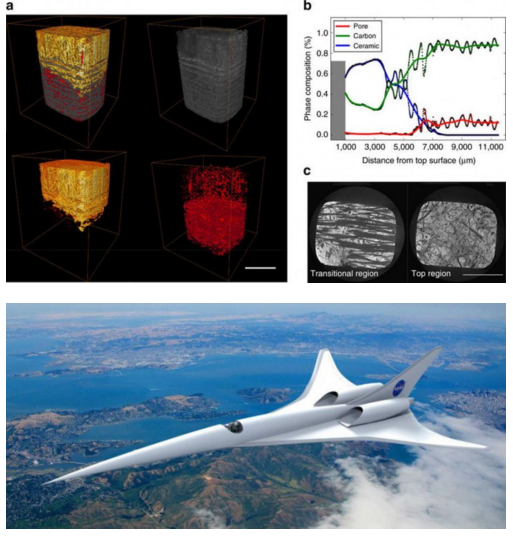來(lái)自英國曼切斯特大學(xué)和中國中南大學(xué)的科學(xué)家合作,在經(jīng)過(guò)各種實(shí)驗篩選之后發(fā)現了這種碳化物陶瓷涂層,該涂層是由碳、鋯、鈦、硼組成的復合材料,它比目前現有的任何一種碳涂層有著(zhù)更好的抗高溫能力。該涂層能夠承受高達 5400 華氏度(約 3000 攝氏度)的溫度??茖W(xué)家認為這種材料適合運用在超音速飛機中。